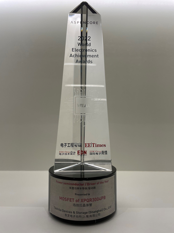 Toshiba Devices & Storage (Shanghai) Co., Ltd., the Shanghai-based subsidiary of Toshiba Electronic Devices & Storage Corporation (“Toshiba”), was the winner of the “Power Semiconductor/Driver of the Year” category in the World Electronics Achievement Awards (WEAA) 2022. Toshiba Devices & Storage (Shanghai) Co., Ltd. was at the ceremony held in Shenzhen, China on November 10, 2022 to receive the award.
