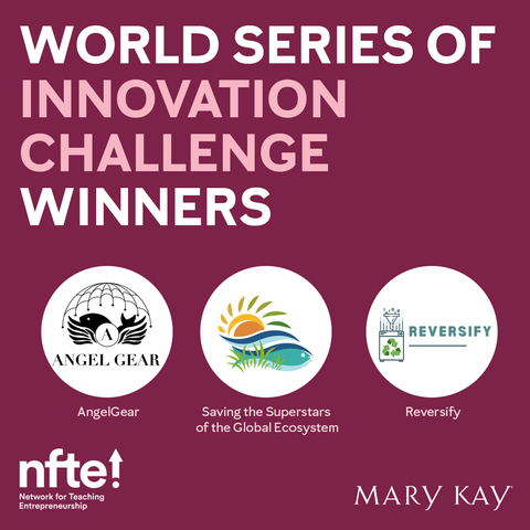 Mary Kay Inc. announced the top 3 winners of its third annual Network for Teaching Entrepreneurship World Series of Innovation Challenge. Winning teams are Angel Gear, Saving the Superstars of the Global Ecosystem, and Reversify. (Graphic: Mary Kay Inc.)