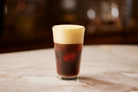 The inviting aroma of lush Partanna® extra virgin olive oil infused cold foam cascades slowly through the dark, smooth cold brew, creating a subtle sweetness in the beverage.