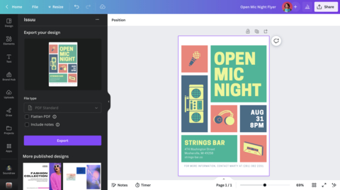 • Issuu – View existing Issuu publications and see analytics to help you plan your next design, or publish your design to Issuu.
