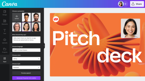 • D-ID AI Presenters – Make your designs more exciting and engaging with Al Presenters by D-ID. Pick a presenter or upload your own, add your text, and our plug-in will generate an Al presenter in moments.