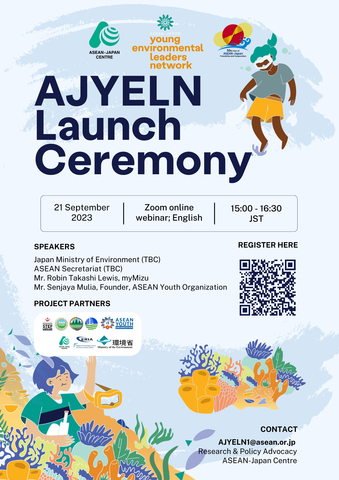 ศูนย์อาเซียน-ญี่ปุ่น (AJC) จะจัดพิธีเปิดตัวเครือข่ายผู้นำสิ่งแวดล้อมเยาวชนอาเซียน-ญี่ปุ่น (AJYELN) ในวันพฤหัสบดีที่ 21 กันยายน เวลา 15.00-16.30 น. (JST) การเปิดตัวครั้งนี้จะแนะนำสมาชิกเยาวชน 37 คนอย่างเป็นทางการที่ได้รับการคัดเลือกจากผู้สมัครหลายร้อยคนจากประเทศสมาชิกอาเซียนและญี่ปุ่นทั้งหมด สมาชิก AJYELN จะนำเสนอโครงการของตนที่เกี่ยวข้องกับปัญหามลพิษจากพลาสติกในชุมชนท้องถิ่นของตน