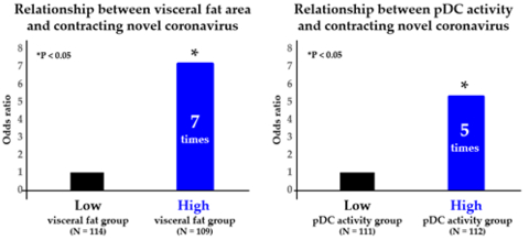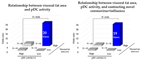 (2) A higher percentage of people with high visceral fat and low pDC activity had contracted novel coronavirus infection and influenza compared to those who did not.