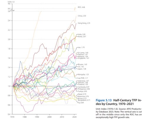 Example of data from the APO Productivity Databook 2023: Figure 5.13 Half-Century Total Factor Productivity index by Country, 1970-2021 (Graphic: Business Wire)