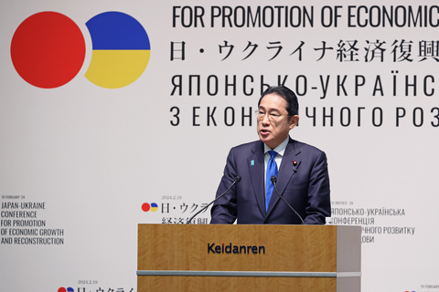เจ้าหน้าที่ภาคส่วนรัฐบาลและตัวแทนภาคธุรกิจสามร้อยคนรวมตัวกันเพื่อแสดงการสนับสนุนการฟื้นตัวของยูเครนจากญี่ปุ่น