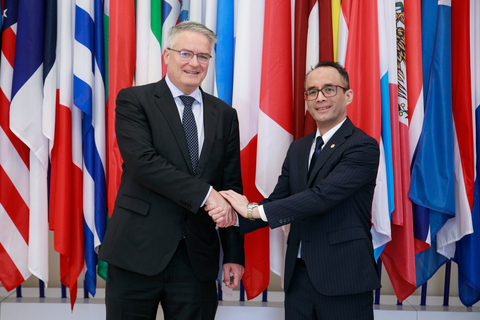 Mathias Cormann เลขาธิการ OECD (L) และ Dr. Indra เลขาธิการ APO (R) (ภาพถ่าย: Business Wire)