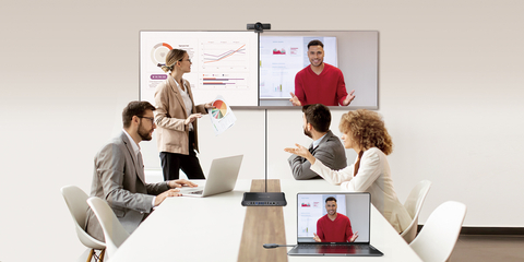 ระบบประชุมไร้สาย eShare W80 ที่มาพร้อมกับพอร์ตอินพุตและเอาต์พุตแบบ Dual HDMI ช่วยลดความยุ่งยากในการเชื่อมต่อกับพีซีหรือแล็ปท็อปในห้อง อีกทั้งรองรับการแสดงผลพร้อมกันบน 2 หน้าจอ ซึ่งคุณสมบัตินี้มีประโยชน์อย่างยิ่งในการช่วยให้มองเห็นเพื่อนร่วมงานที่ร่วมประชุมทางไกลได้อย่างชัดเจนขณะนำเสนอ นอกจากนี้ โหมดการแสดงผลแบบหลายมุมมองยังช่วยให้ผู้ใช้สามารถเปรียบเทียบและวิเคราะห์ 2 เนื้อหาข้างๆ กัน ซึ่งช่วยยกระดับการร่วมกันอภิปรายให้มีประสิทธิภาพดีขึ้น