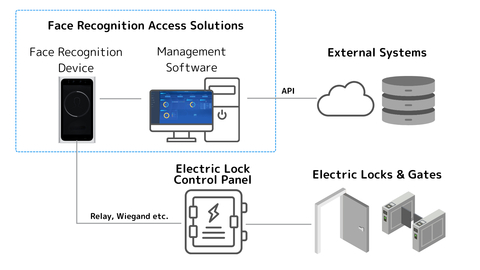 Face recognition access management software for use with the above face recognition devices. The visually intuitive UI, including a dashboard function, enables management of devices, user privileges, and authentication history.